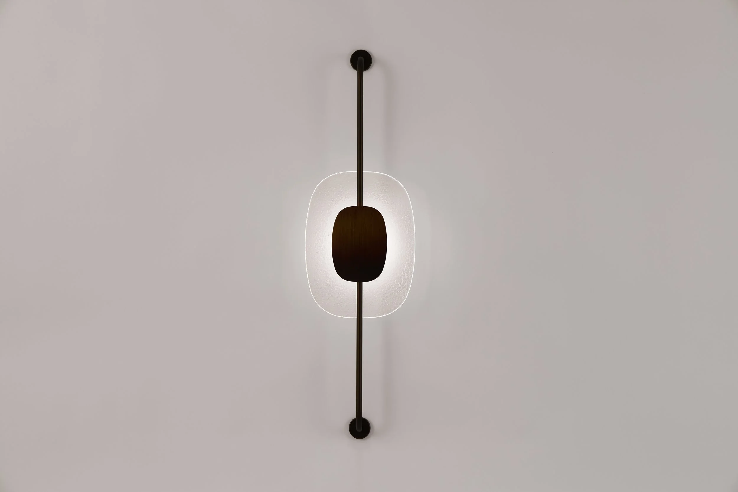 A vertical sculptural wall piece designed for intimate and atmospheric illumination.